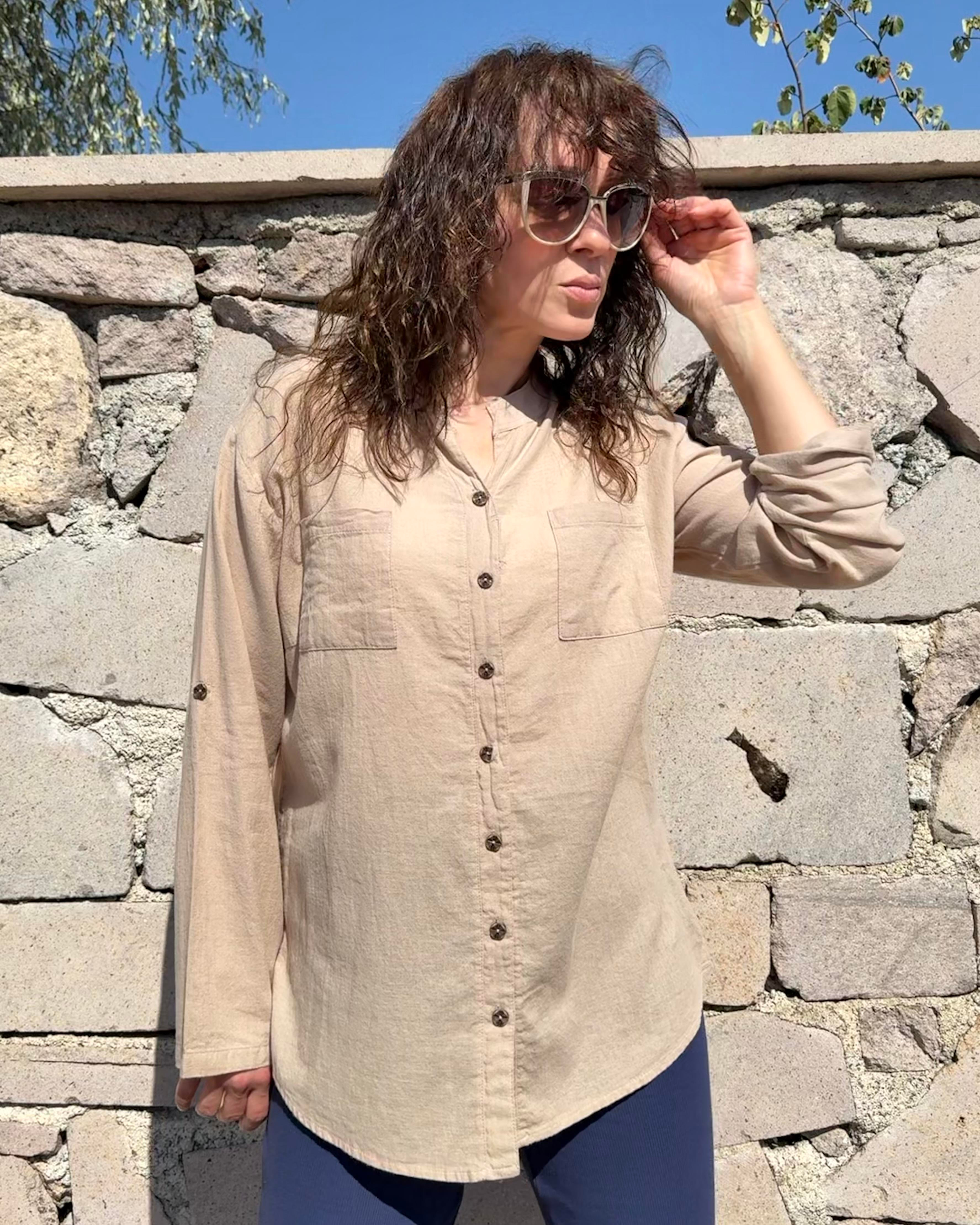 Vizon Kollar Katlamalı Oversize Sırt Dantel Detaylı Müslin Kumaş Gömlek